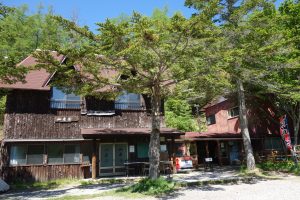 宿泊施設の山荘にランチ食堂を併設。宿泊客はマイカー規制中もここまでは自家用車を乗り入れることができます。もちろん許可を受けてのことですが。