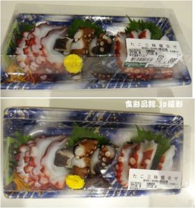 当日は広告の品の京都産の地だこが「入荷なし」だったという表示が売場に掲示されているにも関わらず、盛り合わせには「京都産」が入っているようなので理由を確認。