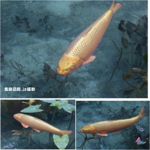 「砂に頭を潜らせたりする習性や鯉の成長によりハートマークが崩れてしまった」というのが真相らしい。まだ生きているとか。