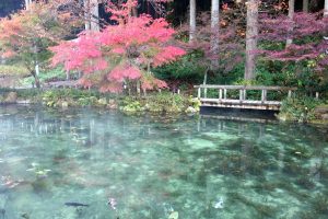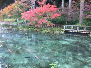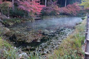 火山岩の一種である流紋岩で構成される高賀山からの湧き水には養分が含まれていないため微生物が育たないことや、湧き水が流れ込むことによって透明度が保たれているようです。