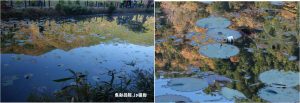 紅葉と夏の花である睡蓮の花を同時に見ることができたのはラッキーでした。ただし、冬の花であるコウホネは残念ながら未開花。