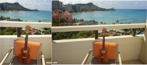 ホテルに帰ってさっそく、ラナイで爪弾く。ジャカジャカ演りたいがご近所迷惑になるので、バラードをソロ演奏。さすがハワイで1年近く置いてあるのでしっかりと乾燥しています。音が良い。