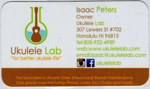 たまたま家人がホテルのスパでリラクゼーションに行くというので、時間が空いて、最後の1軒を見ておこうと、シェラトンワイキキから直ぐ近くのウクレレ・ラボへ。