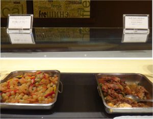 エビ、シャケ、アサリ等の海産物とハワイ州で生産された野菜、そして牛肉・豚肉・鶏肉を使ったメニューが並んでいます。寿司などの和食や韓国料理、中華料理もあります。