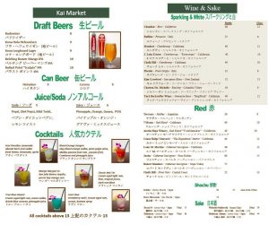 •6名以上のグループの場合18%のサービス料が自動的に加算。