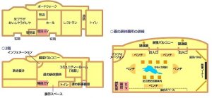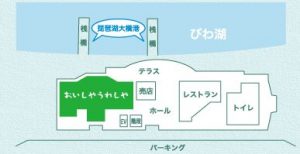 施設は1階に3ゾーン。2階には休憩施設や展望バルコニーがあり、琵琶湖の景色を堪能できます。