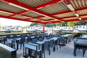 □ディナーは全天候型テラスでBBQ