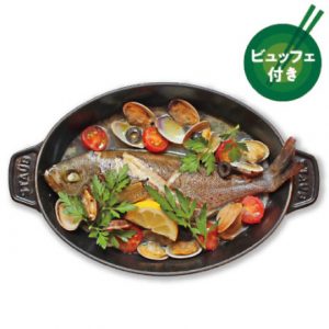 選択したのはビュッフェバイキング付きのメニュー「地魚のトマトアクアパッツア1,922円」ドリンク別。旨いがサラリーマンのランチとしては、やはりお高め。以前は1尾入って2800円でしたが、切り身に変更になって提供価格が下がりました。ありがたい。