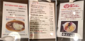 この中では「昔ながらのラーメン」が初実食。「昔ながら」というのがどの「昔」なのかは分からないが、結構、油(脂ではなく)が強い鶏ベースの醤油味。「あっさり」ではないこは確か。