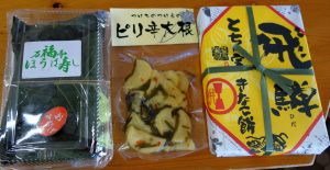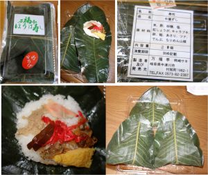 こういった酢飯系の郷土食が大好きで、見かけるとついつい購入。山奥出身のDNAがそうさせるのでしょうか(笑)。ちなみに私の出身地である紀州南部から奈良県にかけては柿の葉を用います。柿の葉寿司の具は魚介系の単品包みが多いのですが、朴葉寿しは山菜・川魚等、具材がいろいろと盛られているので、購入してから開くのが楽しみ。最近では選びやすいように写真で中身を教えてくれることがあるのでありがたい。