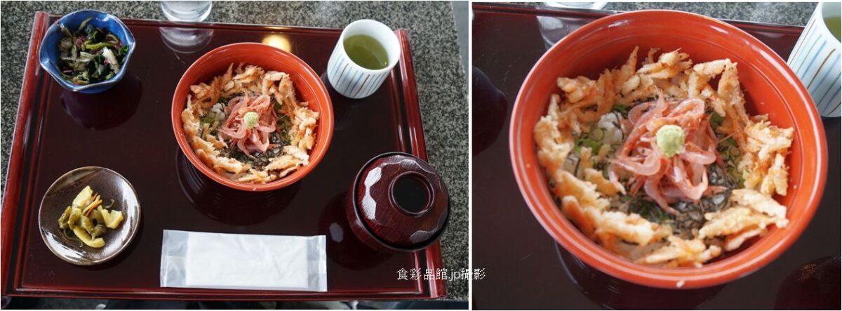 中央に赤富士に見立てた解凍生のさくらえびを配置し、周囲に揚げた桜えびをちりばめたルックスが良い。このメニューを選択した息子に言わせると「とても美味しい」という評価でした。