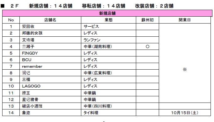 サブ核店 :シネマ(耳东影城)、NITORI、MJ、UNIQLO、Molly Fantasy、海底捞 ・敷地面積 :約 98,000㎡