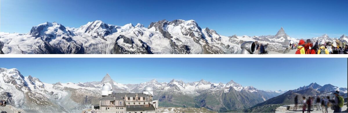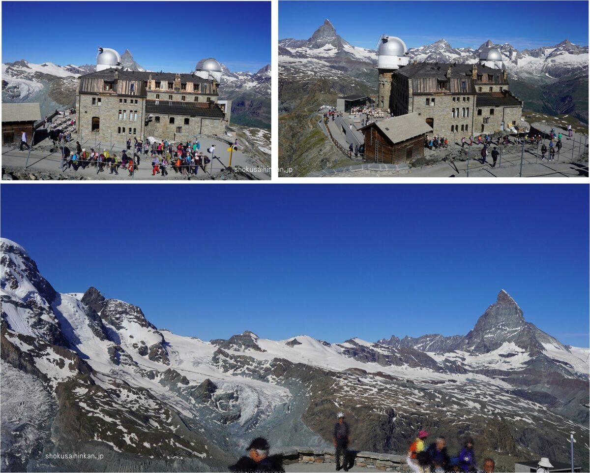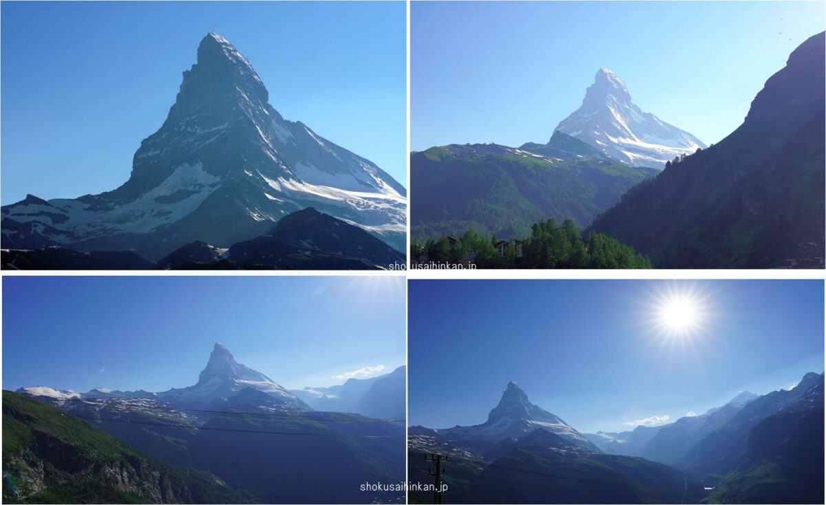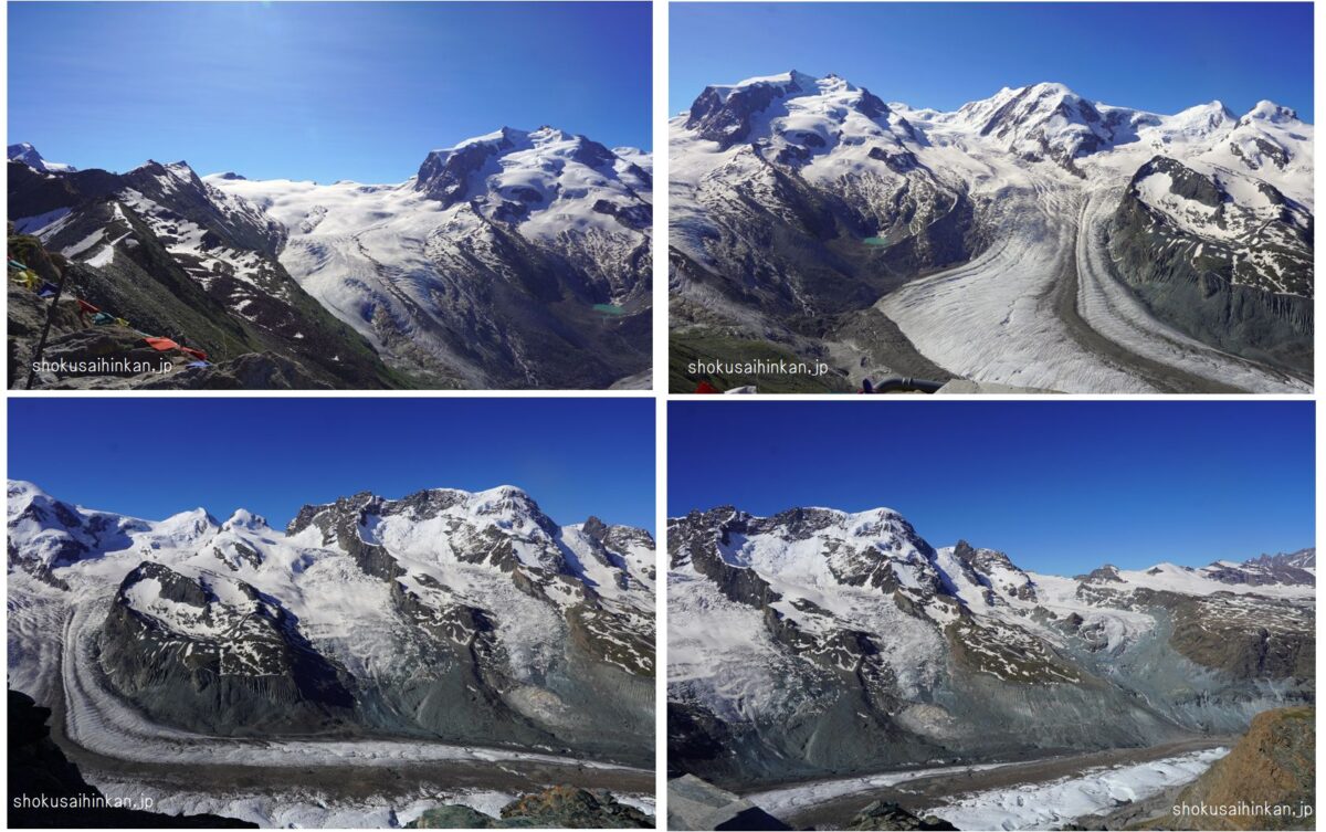 天候に恵まれた「JTBのビシネスクラスで行く憧れのホテル宿泊とスイス5大名峰、6展望台、10日間の旅」まとめページ。リッフェルハウスに宿泊,スフィンクス展望台(アイガー,メンヒ,ユングフラウ),ツェルマット,ブライトホルン,ゴルナーグラートからマッターホルン,007のシルトホルン,サンモリッツ,ディアボレッツァ展望台からベルニアアルプス,ハイジのマインフェルト,.ルツェルン,ピラトゥース展望台から中央アルプス,フランスシャモニー,エギュードゥミディ,モンブラン,グランドジョラス,三大北壁,ジュネーブ,チューリッヒ,グラッシャーエクスプレス,氷河特急,ランドバッサー橋,ベルニナ特急,ブルージオのループ橋,イタリア,ティラノ,カートレイン,
