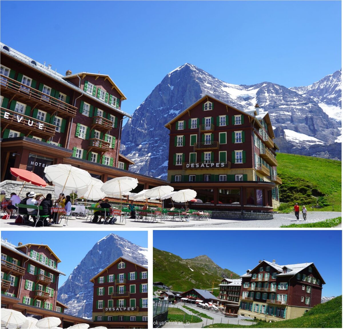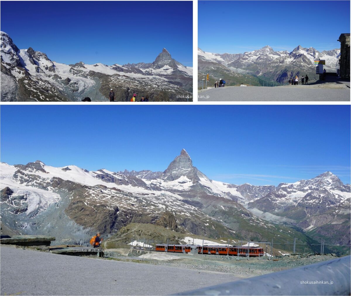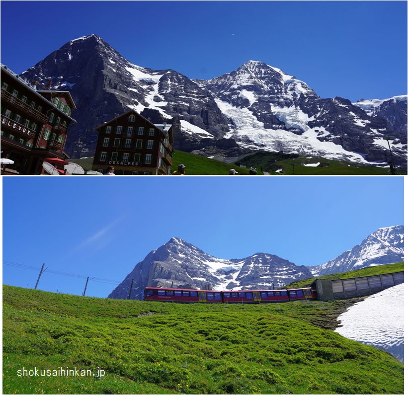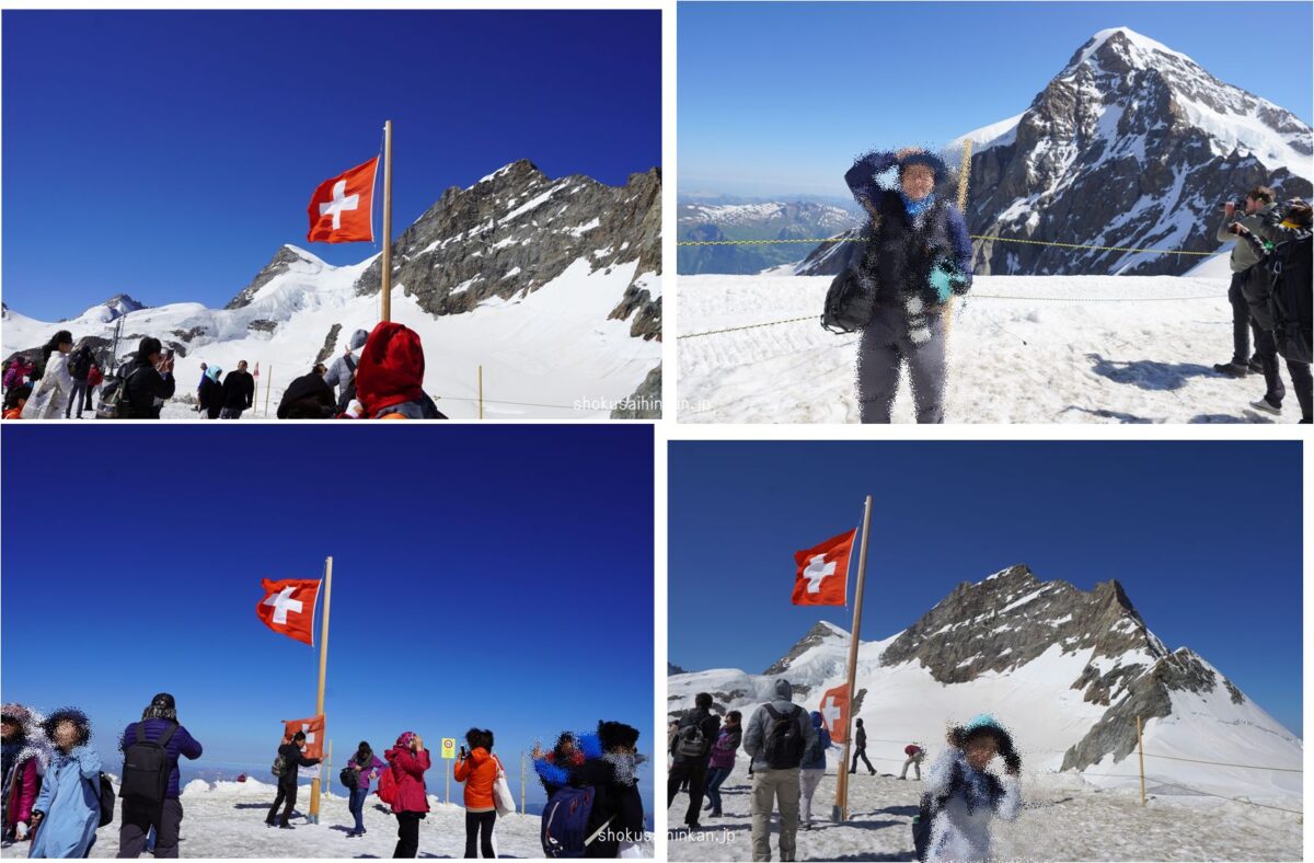 天候に恵まれた「JTBのビシネスクラスで行く憧れのホテル宿泊とスイス5大名峰、6展望台、10日間の旅」まとめページ。リッフェルハウスに宿泊,スフィンクス展望台(アイガー,メンヒ,ユングフラウ),ツェルマット,ブライトホルン,ゴルナーグラートからマッターホルン,007のシルトホルン,サンモリッツ,ディアボレッツァ展望台からベルニアアルプス,ハイジのマインフェルト,.ルツェルン,ピラトゥース展望台から中央アルプス,フランスシャモニー,エギュードゥミディ,モンブラン,グランドジョラス,三大北壁,ジュネーブ,チューリッヒ,グラッシャーエクスプレス,氷河特急,ランドバッサー橋,ベルニナ特急,ブルージオのループ橋,イタリア,ティラノ,カートレイン,