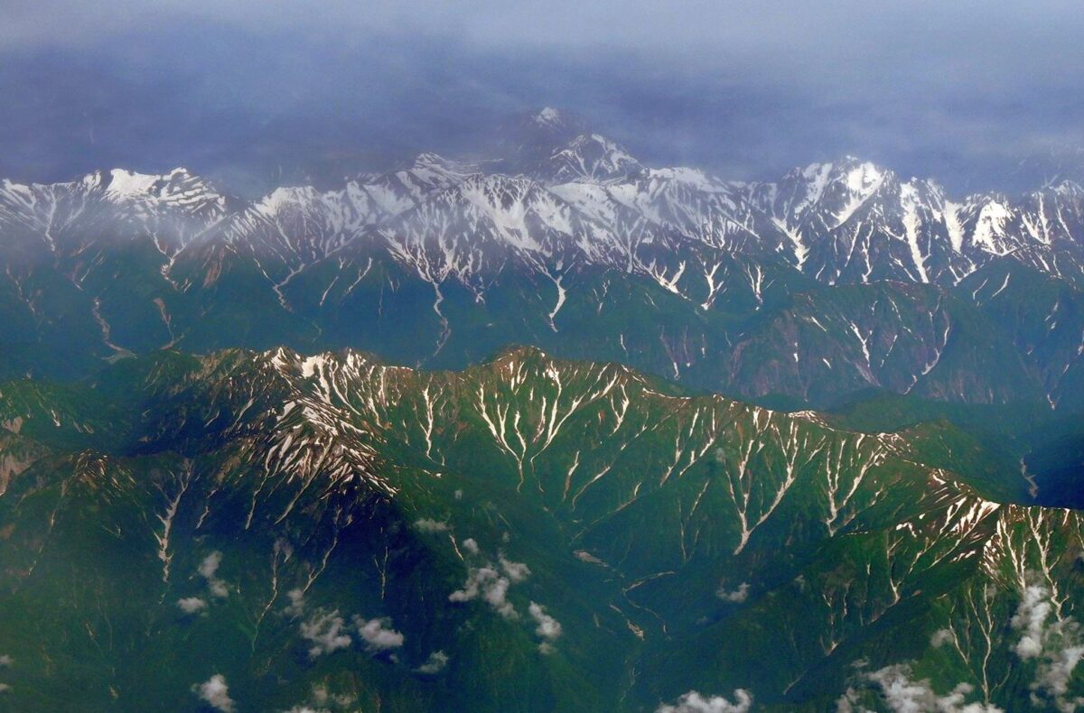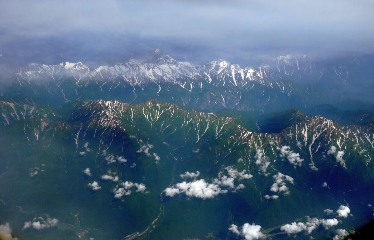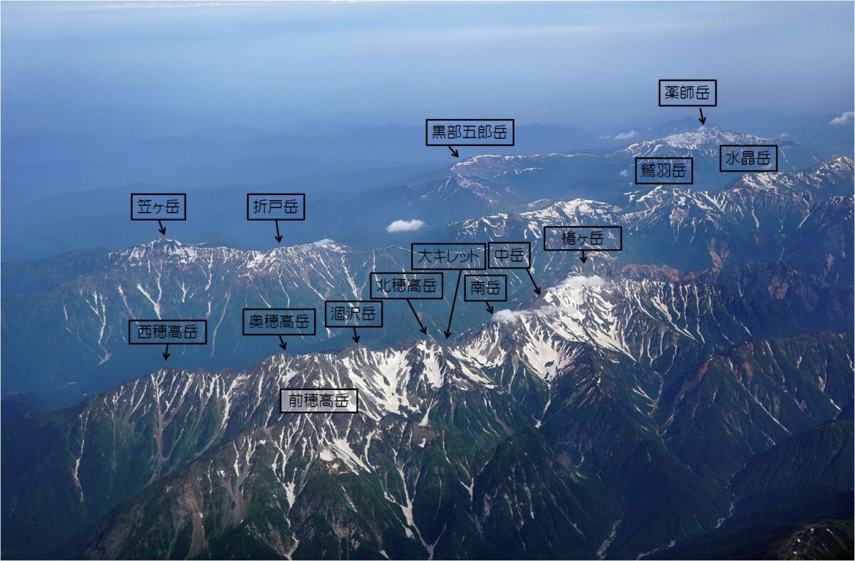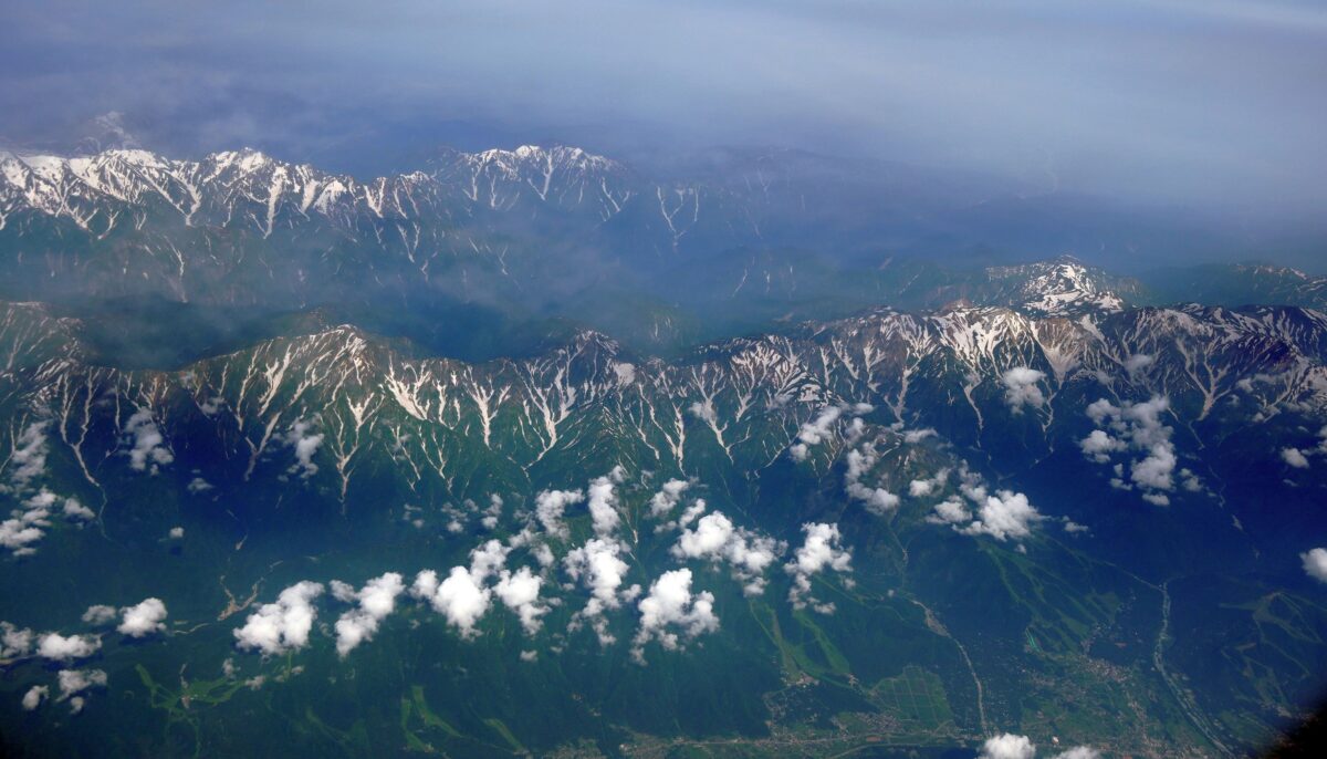 長野上空で後立山連峰から北アルプス、乗鞍、御嶽まで綺麗に見えた。日本の山も美しい。