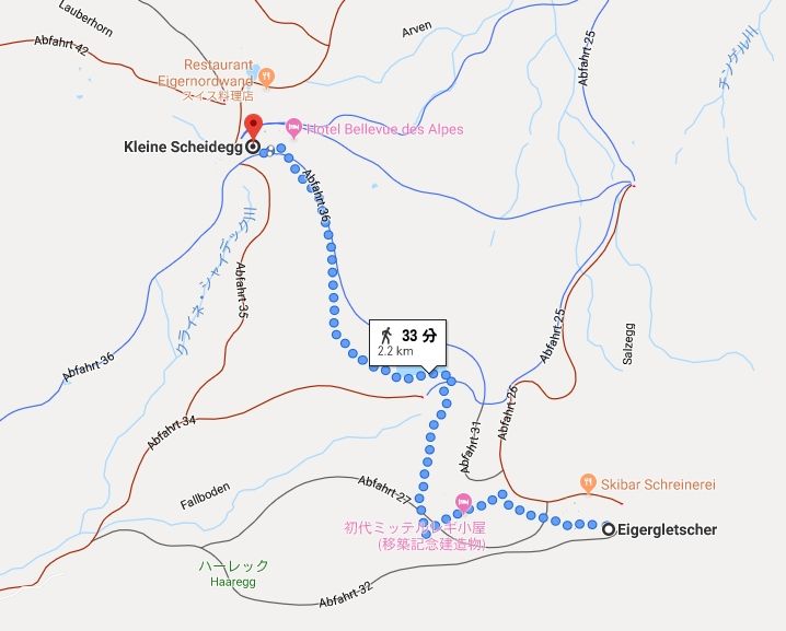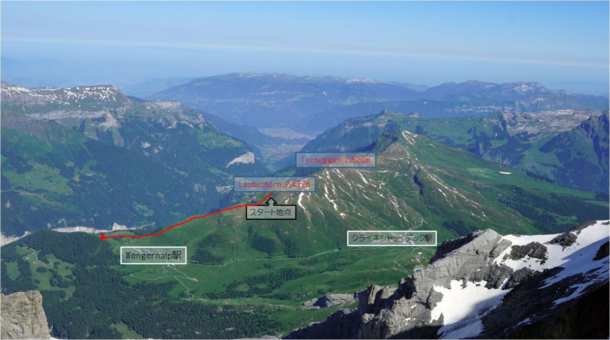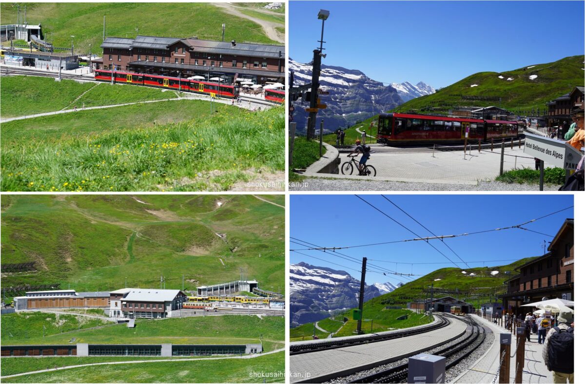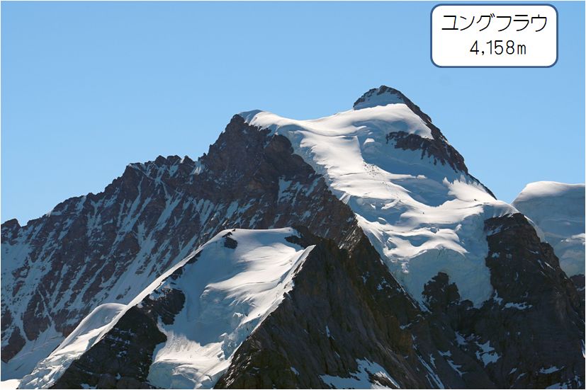 ウェンゲンからユンブフラウヨッホ駅のスフィンクス展望台の移動(上図Aの矢印)も2,300mの標高差があるが、移動が登山列車ということもあり、クライネシャディックでの乗り継ぎ含めて乗車時間は1時間半とゆっくり登るため比較的リスクは少ないかと。