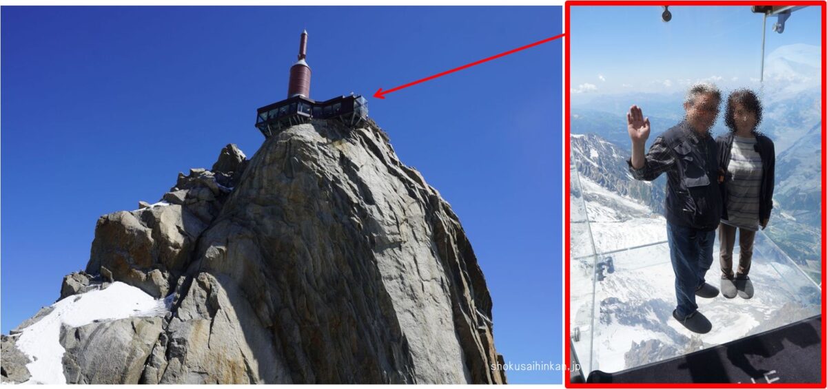 さらに20分ほど待って、エレベーターで上部展望台(3,842m)に上がってモンブランも撮影。ヨーロッパ最高峰だが特に思い入れはない。記念品のみ購入。