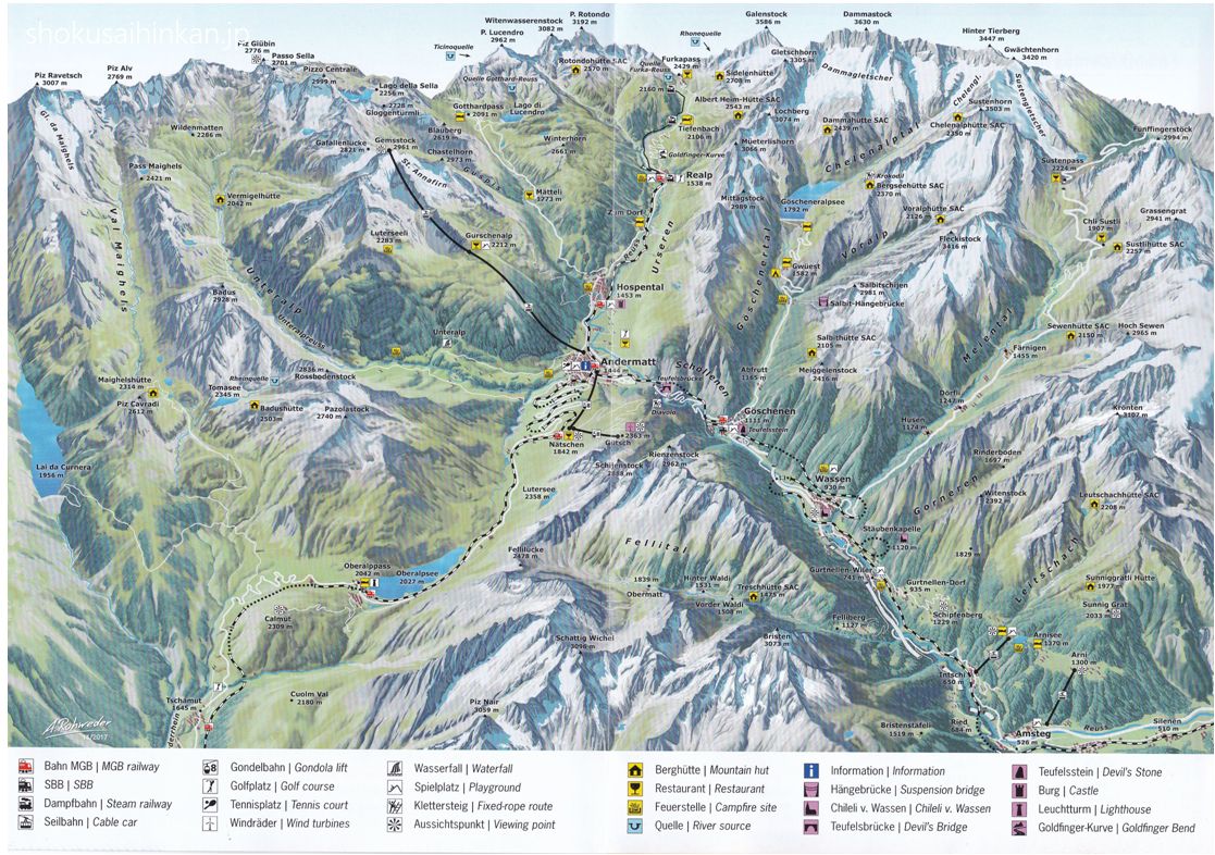 当初予定では、初日チューリッヒ泊で翌日は高度のないサンクトガルテン(ザンクトガルテン)からマインフェルトで時差ボケを解消しつつ、バスでユリア峠(2,284m)を越えて、標高1,822mのサンモリッツ宿泊で高度に順化する行程。