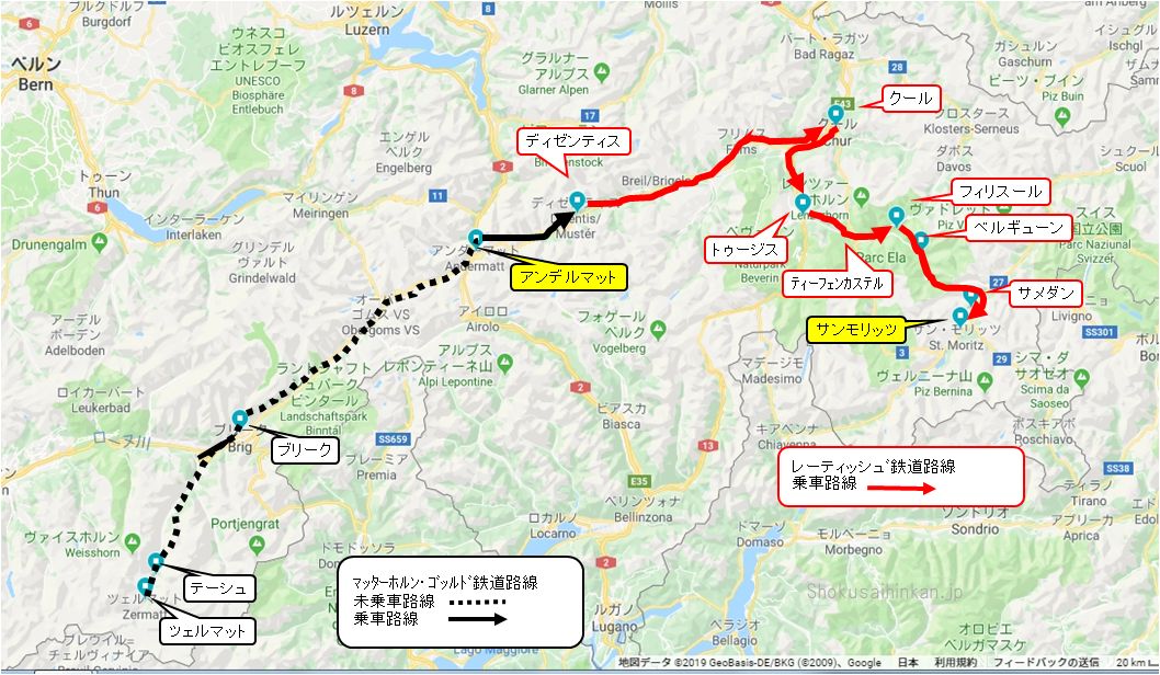 変更内容は、氷河特急の乗車が、当初はサンモリッツ乗車でアンデルマット下車という予定が、アンデルマット乗車でサンモリッツ下車になったということでした。