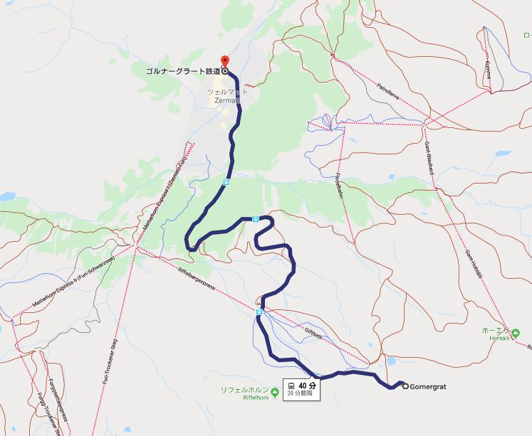 ◇ツェルマットからゴルナーグラートまで鉄道移動図