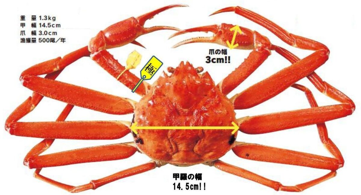 選んでくれたのはなんと1.2kg~1.3kgの特大サイズ。松葉ガニだったら“五輝星”クラス。