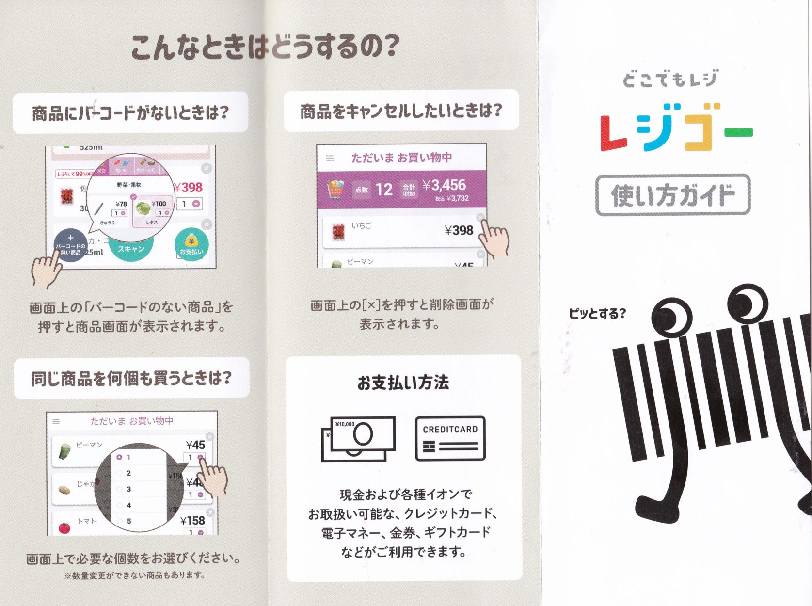 ↓ レジゴー 専用レジ ↓ 支払い完了で返却