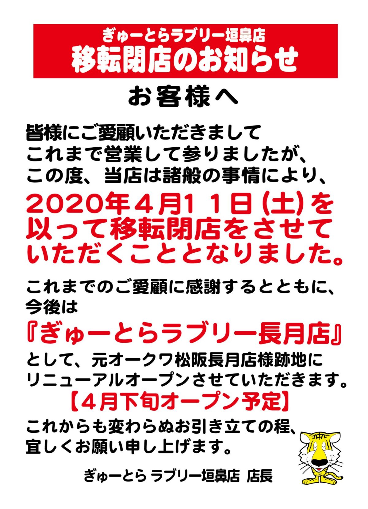 ▼4/11閉店ぎゅーとらラブリー垣鼻店