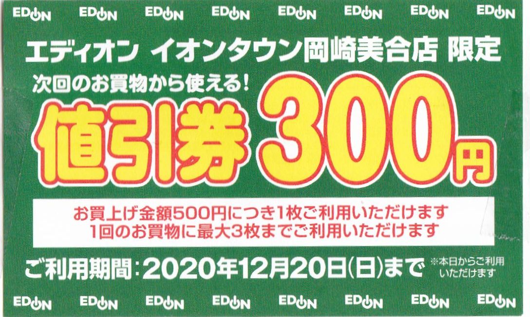 プレオープン訪問して追記→エディオンイオンタウン岡崎美合店(愛知県岡崎市)2020年11月25日プレオープン。11月27日グランドオーブン