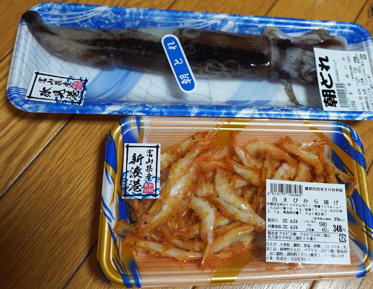 朝どれ地魚コーナー、北陸の商品、アルビスグループ限定商品を中心に購入。