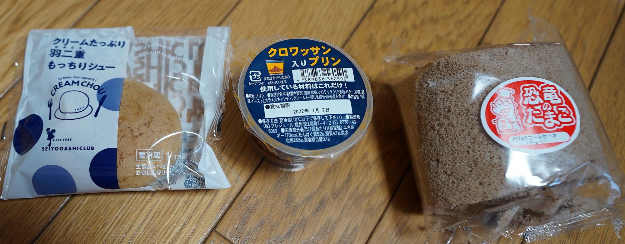 ・羽二重シュー,クロワッサン入プリン,恐竜のたまご