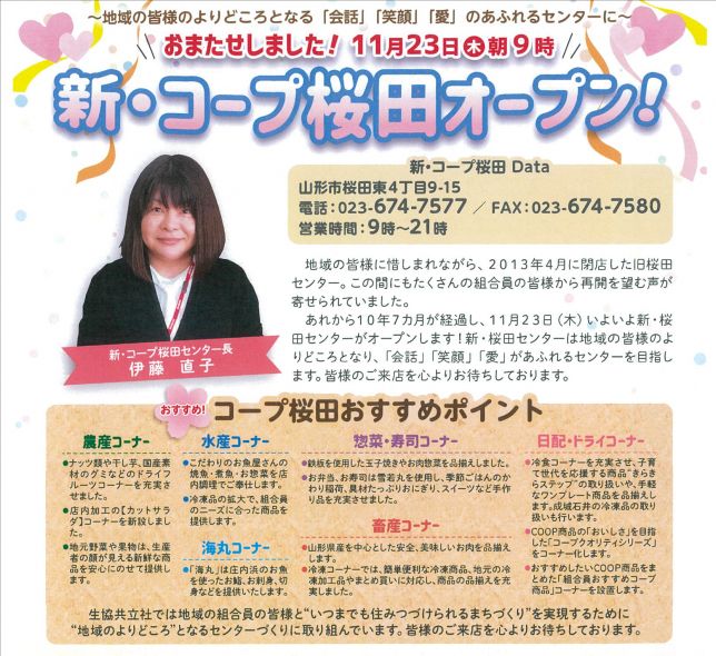 ・<11/21予定>くらしのセンターコープ桜田店(山形市)