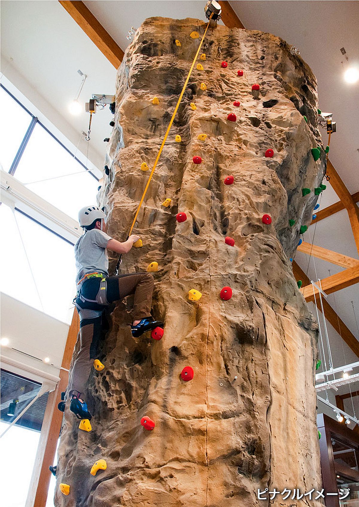 ◇高さ約8mのクライミングピナクルが店内設置