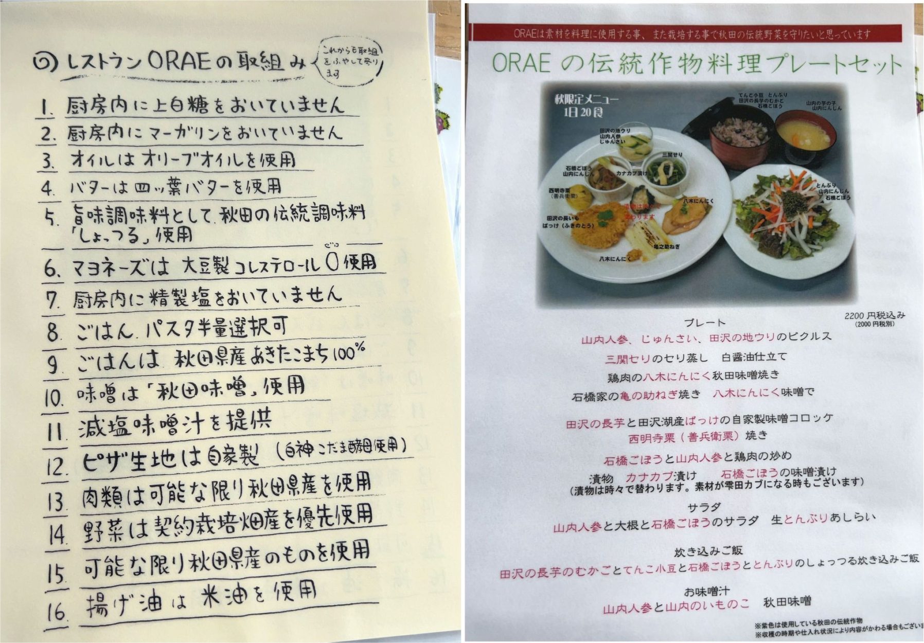 ★ORAEの伝統作物料理プレート