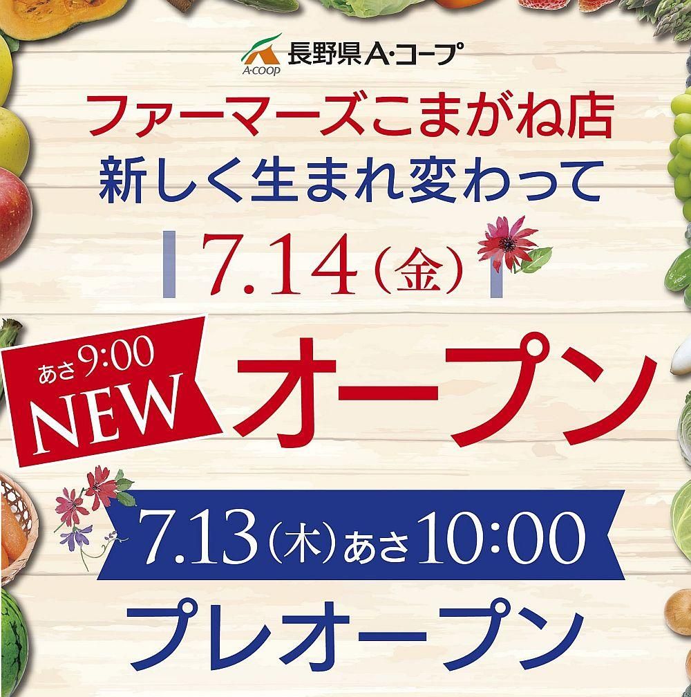 ・(7/13プレ)7/14移転A・コープファーマーズこまがね店(長野県駒ヶ根市)