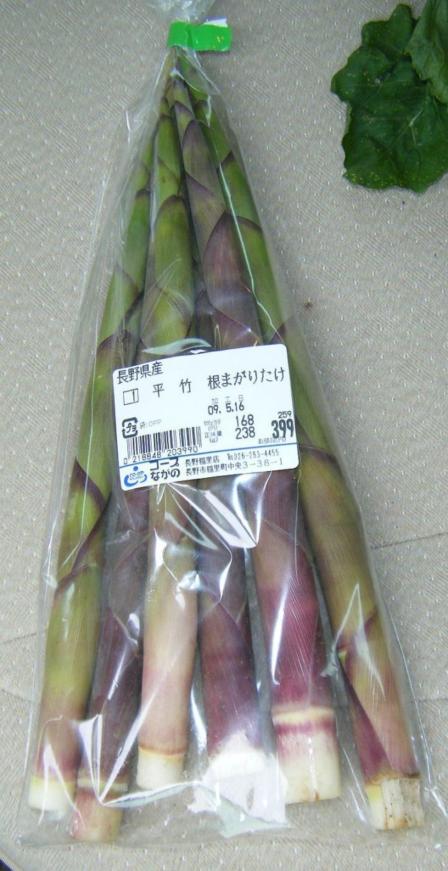 そして、今回、一番嬉しかった買物「根曲がり竹(平竹)」。一度は旬の時期の商品を生から料理して食べてみたかった。「産直コーナー」で発見。