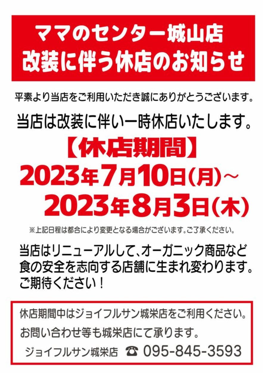 ・7/10~8/3改装休業
