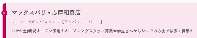 志摩半島先端に2店(マックスバリュ志摩和具店,マックスバリュエクスプレス志摩波切店)出店。