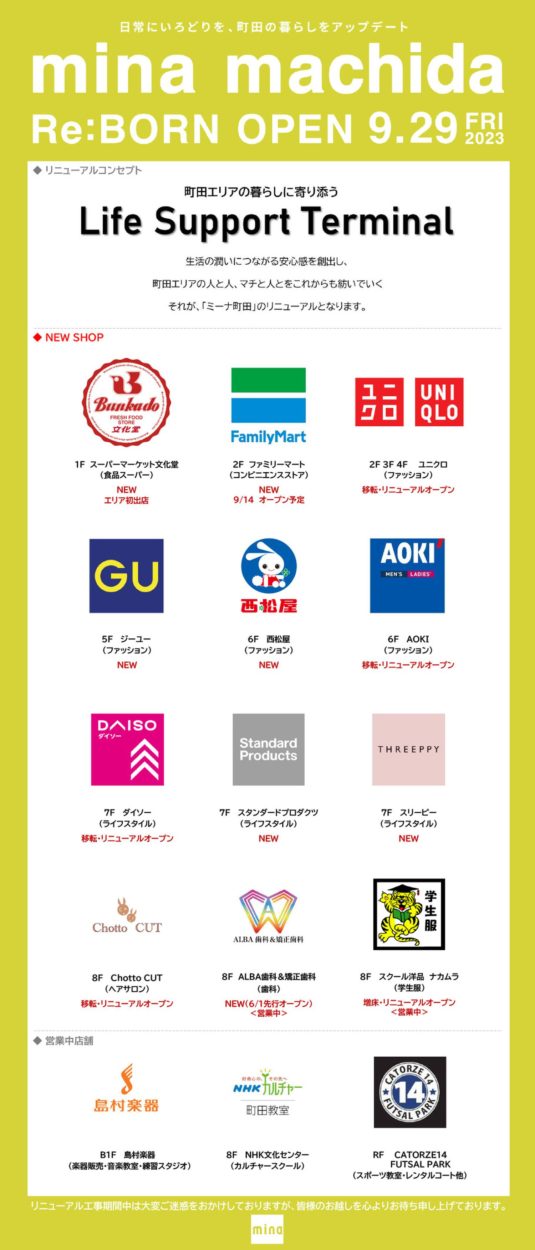 文化堂ミーナ町田店(東京都町田市)2023年9月29日にリニューアルオープン,ミーナ町田に西松屋Standard Products,THREEPPY,ジーユー,ファミリーマート,他出店,