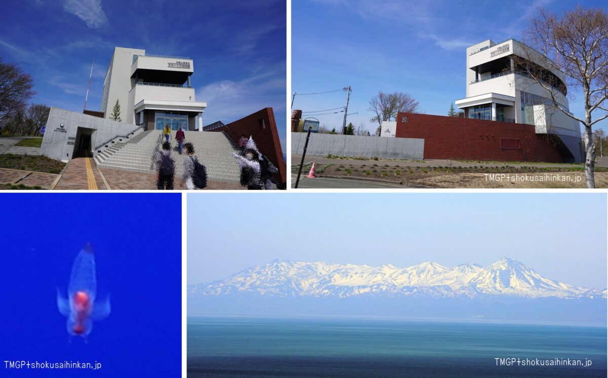 ↓ オホーツク流氷館,クリオネ,知床連山遠望