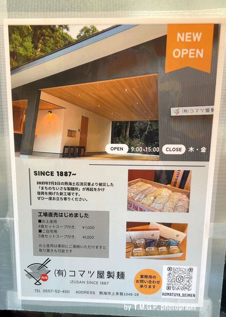 同行した息子には半チャーハンを勧めることも忘れなかった!(^^)!。レンゲで一口。好みのパラパラタイプではないが味が良い。ほぉ~と感心する。これはなかなかレベルが高い。当店を訪れた目的はもう一つ。「コマツ屋製麺所」を確認したかったから。「わんたんや」「石川屋」「雨風本舗」「浜よし」等々、熱海の銘店御用達の製麺所の麺を味わいたいと思ったのがその理由。2021年の伊豆山土石流災害から復活したコマツ屋製麺所。その麺を噛みしめながら実食させていただきました。