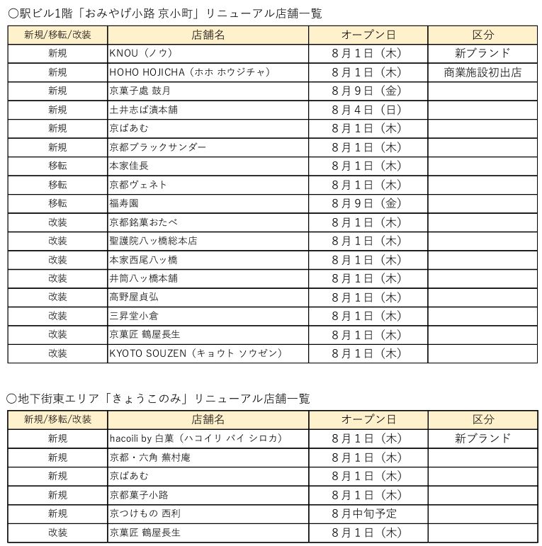 ・「おみやげ小路京小町」大幅リニューアル(2024年8月1日より順次オープン)