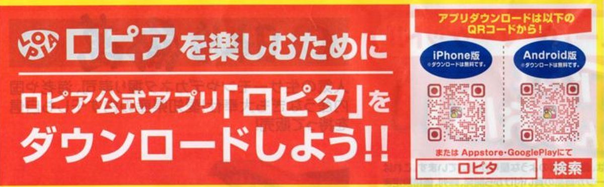 □チラシその他情報確認は公式アプリ「ロピタ」がお勧め。