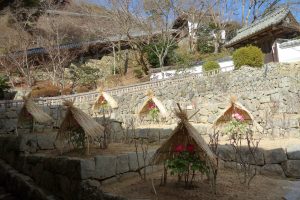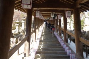 仁王門から本堂までは399段の階段を登るが、寒牡丹を眺めながらの登廊(階段の上に屋根がついている)は垂直移動が紀三井寺よりもなだらかなので意外と疲れない。