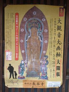本尊の十一面観音像は重要文化財。その本尊をほぼ原寸に描かれた「本尊御影大画軸(高1646.6cm、横幅622.6cm、重量125.5kg)」が公開