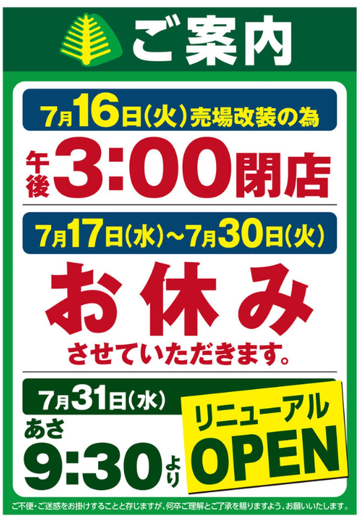 ・6/25改装フードスクエアカスミ白岡店(6/21)